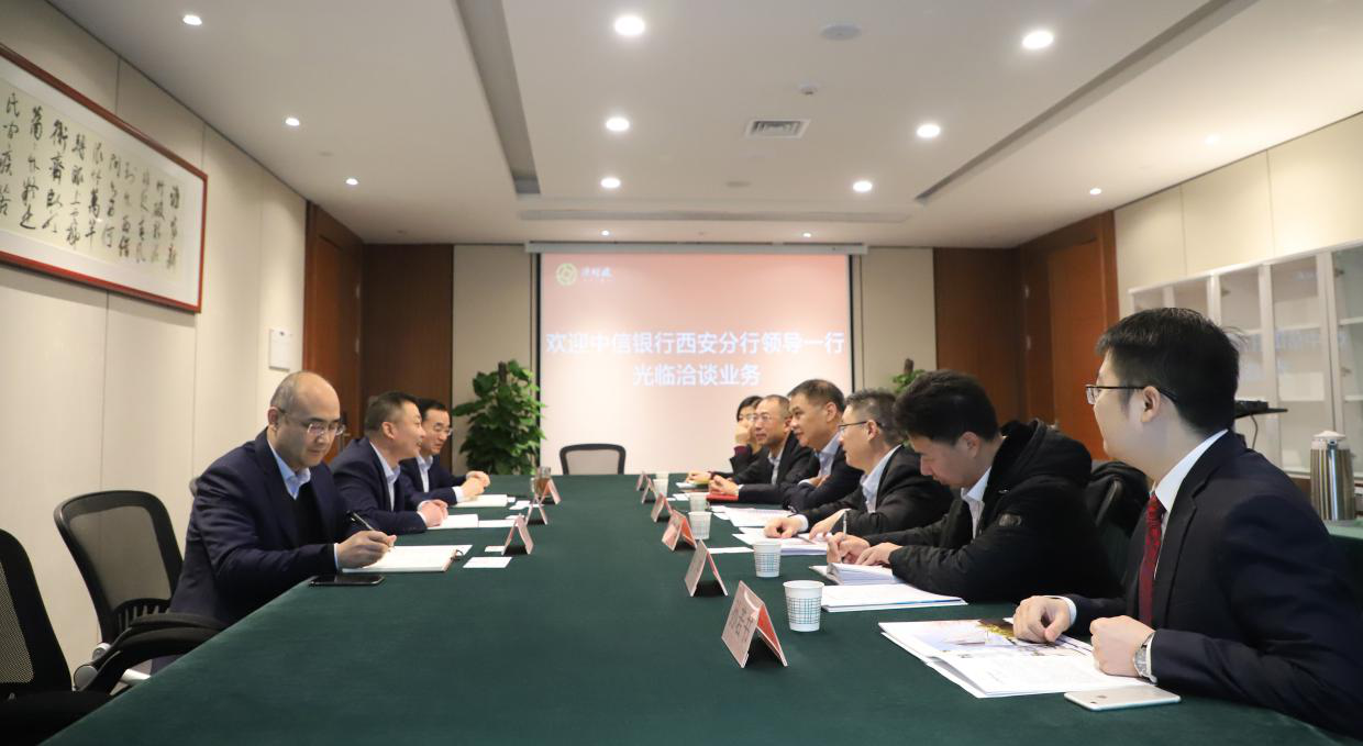 12月24日上午,中信銀行西安分行行長(cháng)胡寶安、副行長(cháng)楊曉峰一行來(lái)我公司就雙方合作事宜進(jìn)行座談交流。公司董事長(cháng)劉亞、總經(jīng)理王銀科及副總經(jīng)理趙建房參加座談。