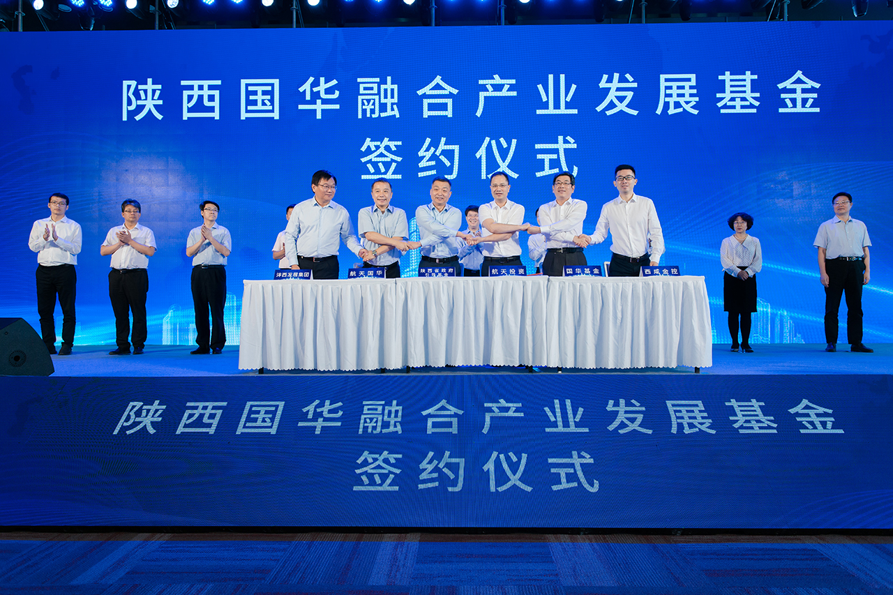 會(huì )上,陜西省財政廳常艷玲副廳長(cháng)對引導基金運行情況、帶動(dòng)社會(huì )資本投資情況做了詳細介紹,并對簽約各方共同開(kāi)展項目投資,打造我省軍民融合創(chuàng )新體系和產(chǎn)業(yè)體系提出了要求和希望。航天投資控股有限公司張陶董事長(cháng)、西咸新區黨工委委員、管委會(huì )趙孝副主任分別致辭后,陜西省政府投資引導基金(以下簡(jiǎn)稱(chēng)“引導基金”)與航天投資控股有限公司、國華軍民融合產(chǎn)業(yè)發(fā)展基金、西咸金融控股集團有限公司、西咸新區灃西發(fā)展集團有限公司及航天國華股權投資管理有限公司共同簽署了基金合伙協(xié)議。