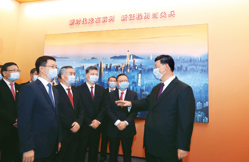 2020年10月14日,深圳經(jīng)濟特區建立40周年慶祝大會(huì )在廣東省深圳市隆重舉行。中共中央總書(shū)記、國家主席、中央軍委主席習近平在會(huì )上發(fā)表重要講話(huà)。這是當天上午,習近平等參觀(guān)“從先行先試到先行示范——慶祝深圳經(jīng)濟特區建立40周年展覽”。 新華社記者 鞠鵬/攝